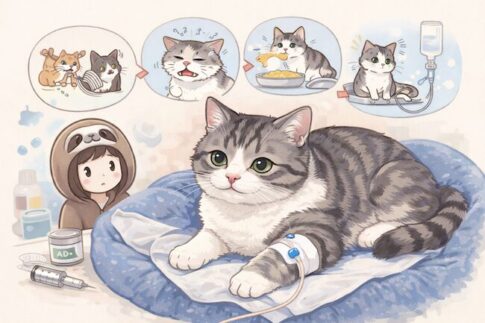 猫の健康・通院点滴後、チョロの前足がぷよぷよになって焦った日 チョロは肝臓が悪くて週に1回、注射・点滴に通っています。 いつものように帰ってきて、ふとチョロを見たとき。 「……あれ?」 左前足と左脇が、やたらと膨らんでいる。 触ってみ...